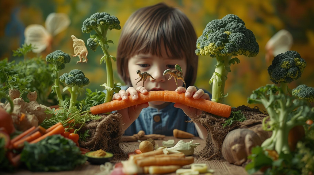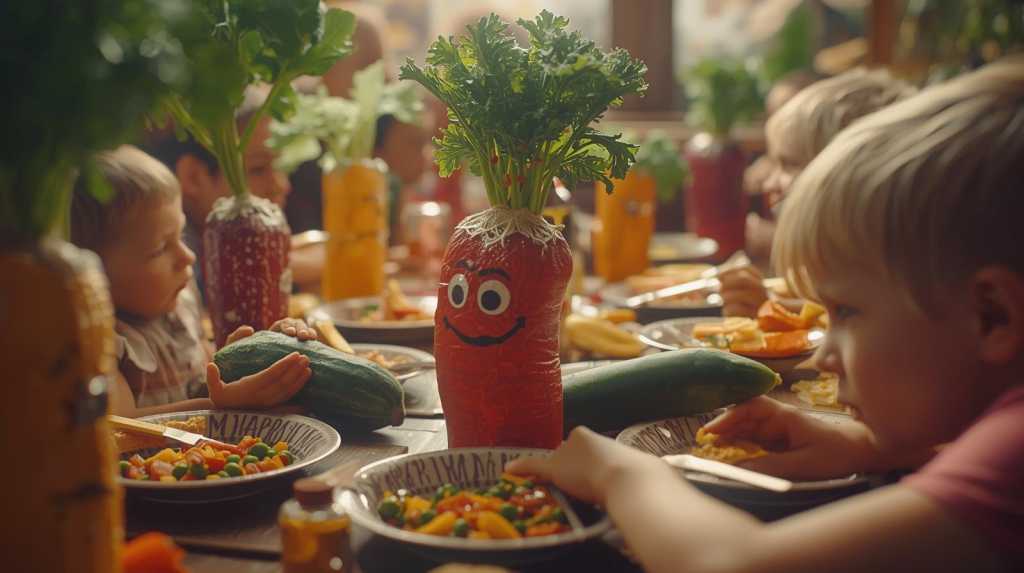 2. Hrana kao igra: Niko ne želi da jede dosadnu hranu, a najmanje deca. * Pravite oblike: Koristite modle za kolače da isečete krastavac ili cveklu u obliku zvezdica i srca. * Kreirajte priče: Brokoli može postati „malo drveće za dinosauruse“, a karfiol „oblaci“. Napravite smešno lice na tanjiru koristeći različito povrće. * „Umak je zakon“: Mnoga deca će pojesti skoro sveže povrće (štapiće šargarepe, paprike, krastavca) ako imaju u šta da ga umaču. Ponudite im zdravi humus, pavlaku sa začinskim biljem ili blagi sos od paradajza.
