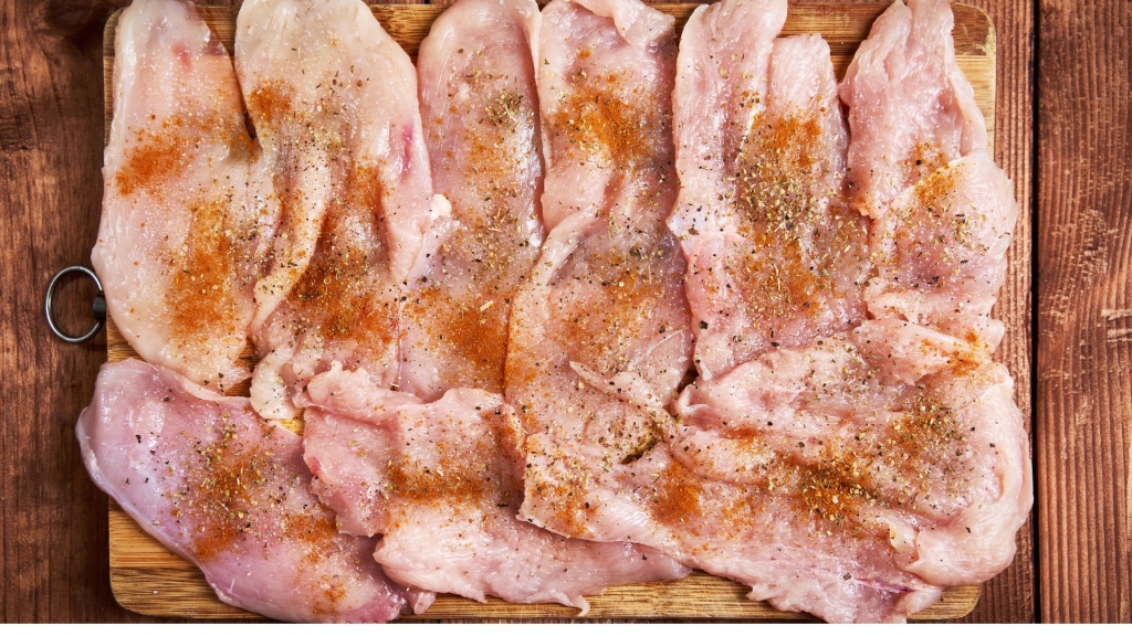 - Priprema fileta: Očistite pileće filete i lagano ih istucite kako biste dobili ravnomernu debljinu. To će pomoći da se meso peče ravnomerno.