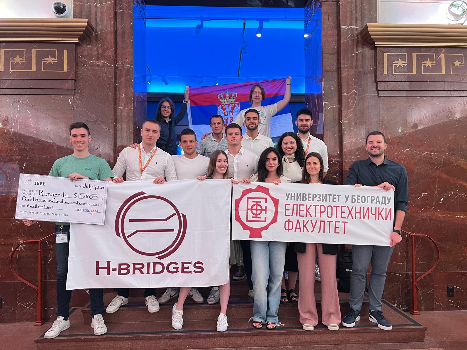 H-Bridges, tim studenata sa Elektrotehničkog fakulteta (ETF) tradicionalno predstavlja Srbiju na najvećem svetskom univerzitetskom takmičenju u oblasti inovativnih i energetski efikasnih rešenja – IEEE International Future Energy Challenge (IFEC). Tim Elektrotehničkog fakulteta je i ove godine u finalu takmičenja, održanog 14 – 17. jula u Ostinu u Teksasu, ostvario veliki uspeh, osvojivši 4. mesto. Konačni plasman timova u finalnoj rundi IEEE IFEC 2024. godine je: